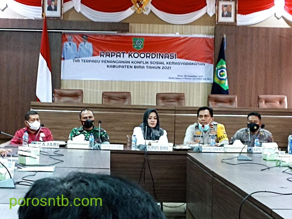 Bima, porosntb.com.- Kapolres Bima, AKBP Heru Sasongko, S.I.K yang diwakili Kasi Hukum Iptu I Wayan Sada Suitra, S.H yang didampingi Kasubag Bin Ops yang mewakili Kabag Ops Polres setempat, mengikuti Rapat Koordinasi Tim Terpadu Penganan Komplik Sosial , Kemasyarakatan Kabupaten Bima tahun 2021, Rabu (8/9/21) pagi tadi Pukul 09: 35 Wita.